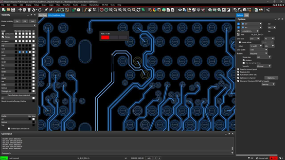 PCB布局工具中的其他功能也可以幫助您完成工作。其中包括3D查看和檢查功能以及可在設計仍在布局時使用的大量仿真工具。在上圖中,您可以看到 IR Drop Vision 查看器,這將幫助您確保所有連接都接收到其功能所需的適當電量。IR Drop Vision 是對混合信號 PCB設計進行完整 PDN 分析的第一步,可以幫助您避免使用多個原型構建進行昂貴的調試和測試。